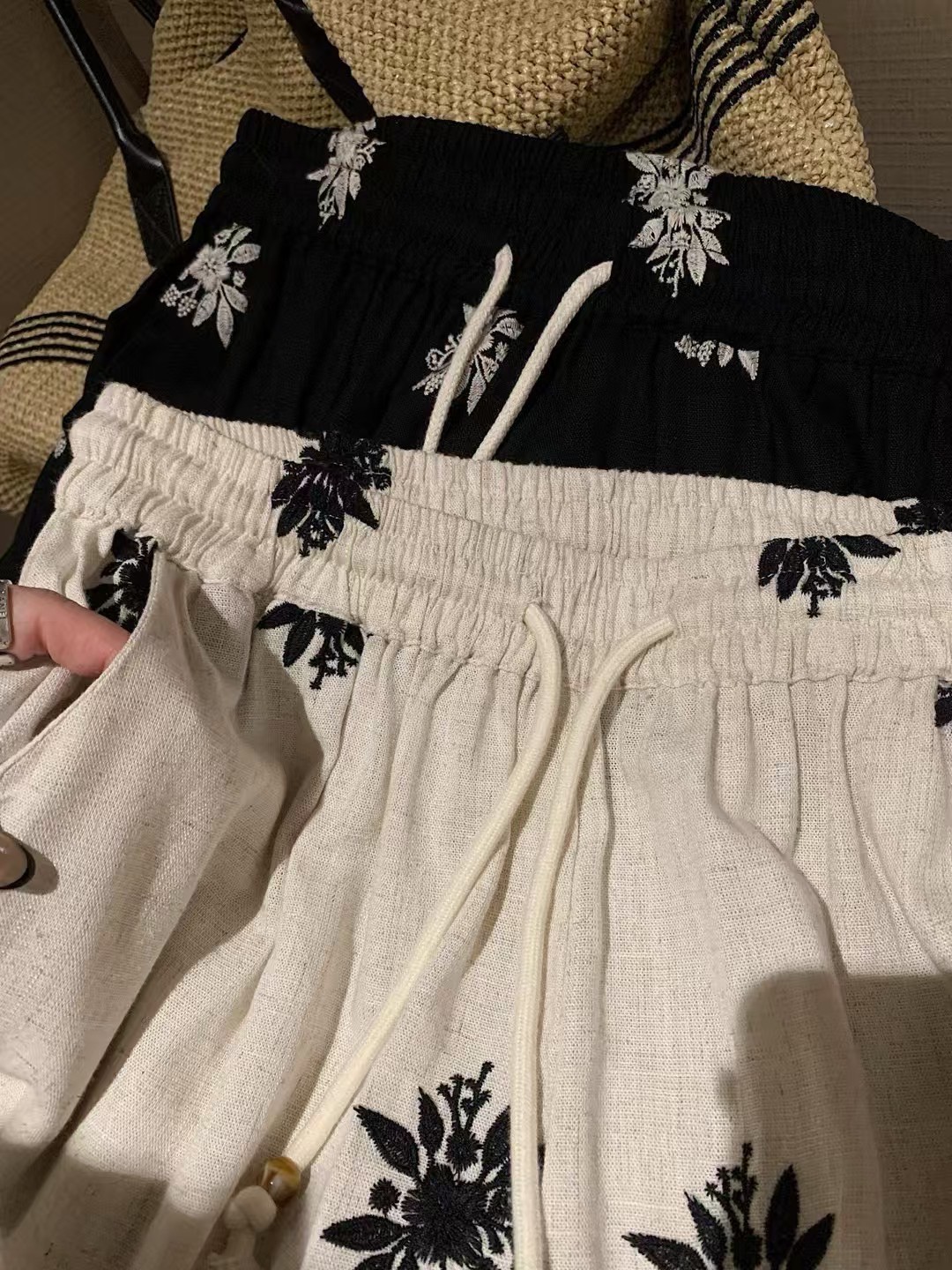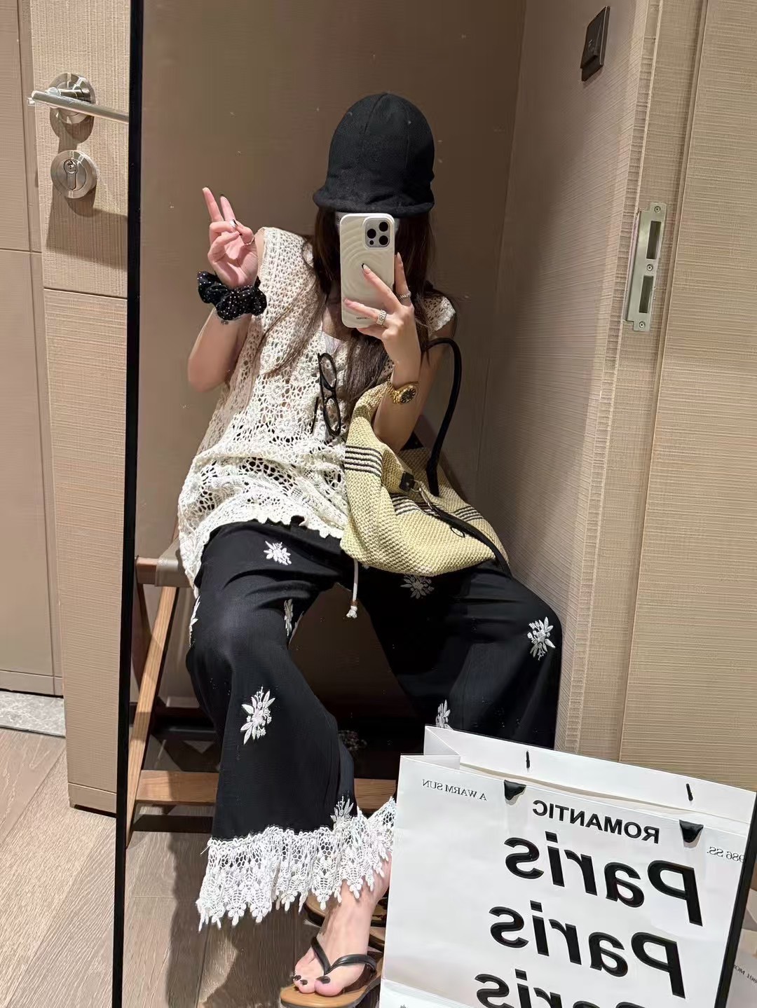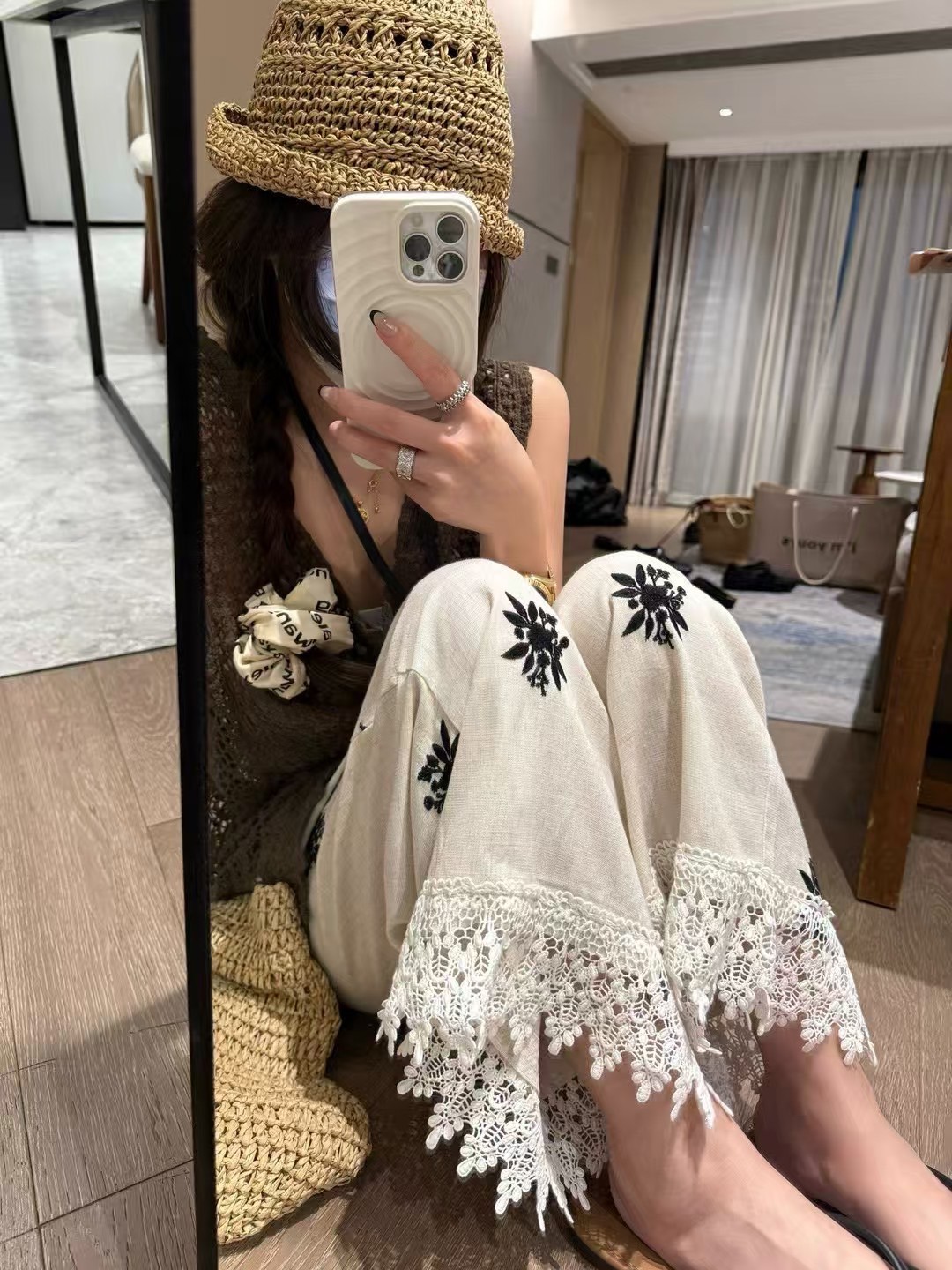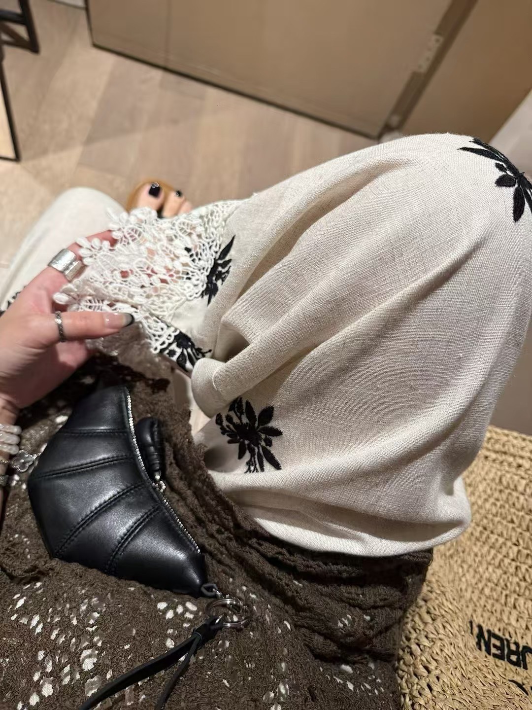 材質:亞麻刺繡 參考尺寸CM S 腰圍62 臀圍106 褲長90 M腰圍66 臀圍110 褲長91 L 腰圍70 臀圍114 褲長92 模特 身高 162/48 拍照穿S <介於尺寸選大> 真的很好搭 也是小重工的褲子 褲子大身面料定做後工藝刺繡 褲腳也是做了勾花拼接 搭配鏤空背心一套入,超好看 https://web.mansastudio.tw/wp-content/uploads/2025/07/772994177.612313.mp4 顏色 預購 – 黑色, 預購 – 杏色 尺寸 S, M, L
