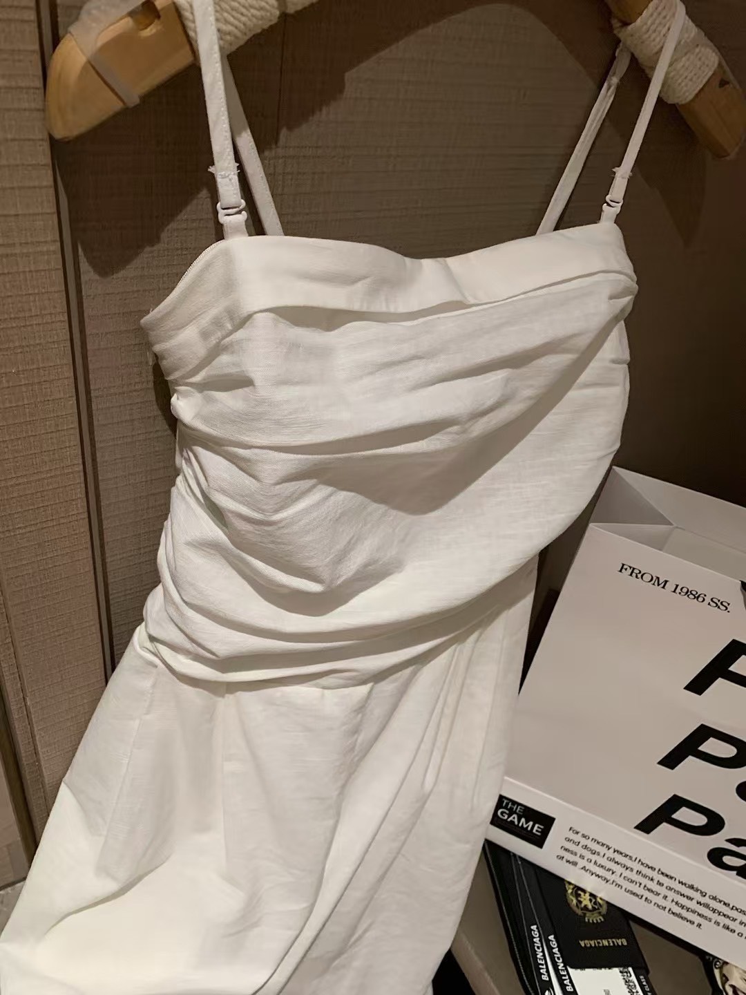 材質:亞麻棉 參考尺寸CM S 胸圍64 腰圍64 臀圍128 衣長142 M胸圍68 腰圍68 臀圍132 衣長143 L 胸圍72 腰圍72 臀圍136 衣長144 模特 身高 162/48 拍照穿S <介於尺寸選大> 氣質,性感又很大方的感覺 胸部有做防滑條 不用擔心支撐不住 抹胸部分做了壓褶設計 拉長身材比例的同時 如果覺得不方便可以把吊帶扣上去 https://web.mansastudio.tw/wp-content/uploads/2025/07/772994177.864086.mp4 顏色 預購 – 黑色, 預購 – 白色 尺寸 S, M, L