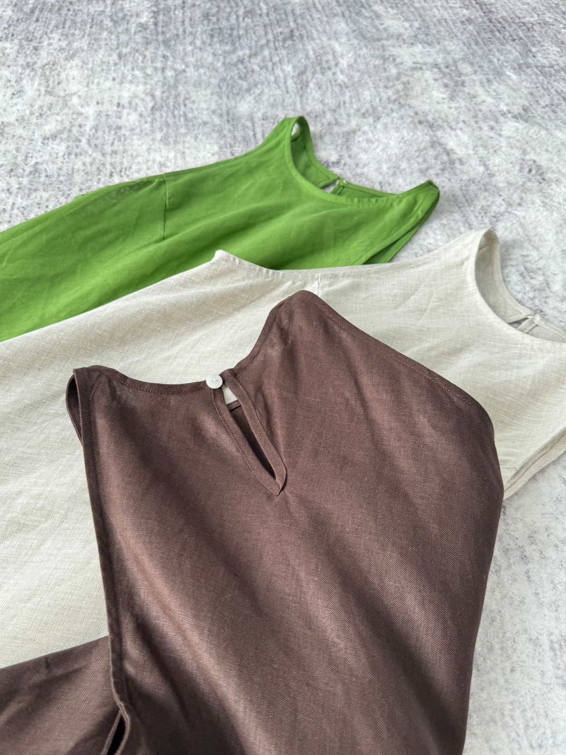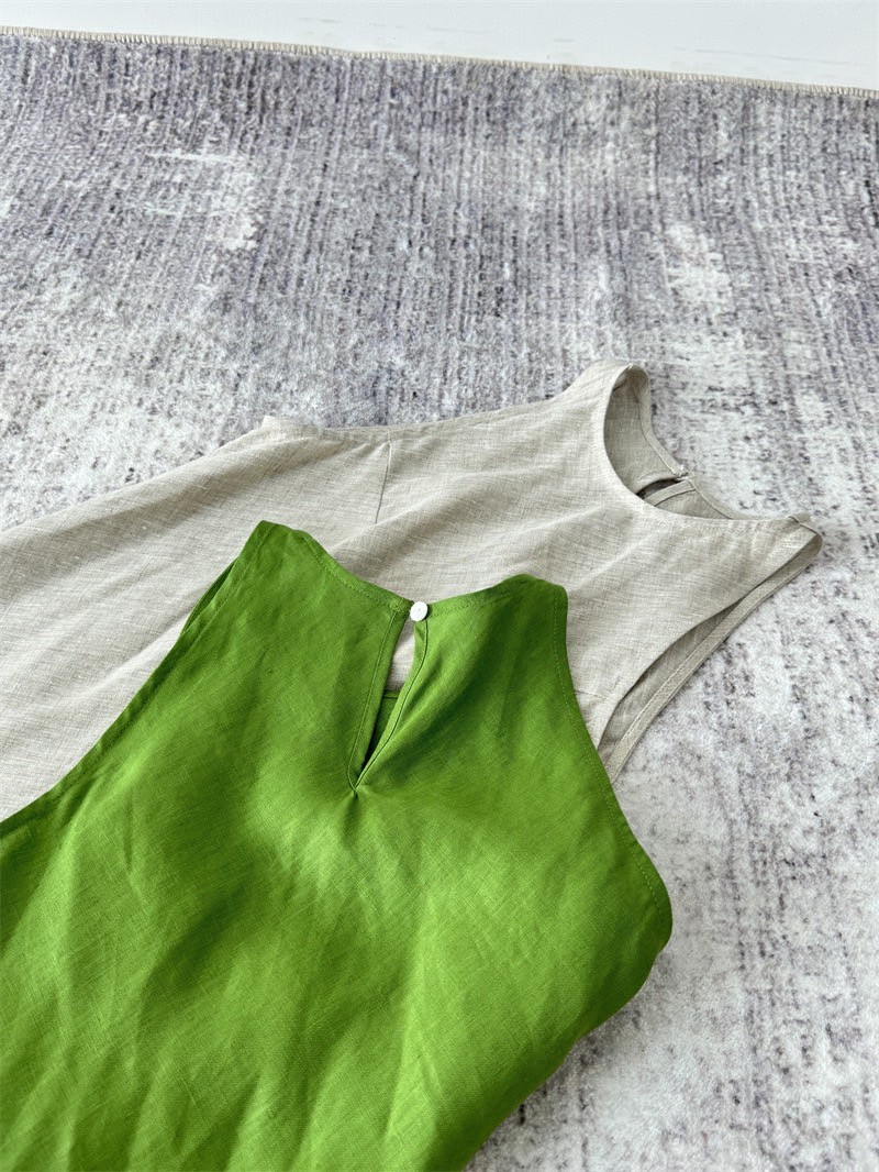 面料 / 100亞麻 尺寸 /CM S 衣長131 胸圍84 臀圍90 腰圍82 M 衣長132 胸圍88 臀圍94 腰圍86 L 衣長133 胸圍92 臀圍98 腰圍90 模特 :試穿報告/160/47 穿S 165/55 穿L, 168/54 穿M 常規乾洗 ,熨斗底板溫度110℃ &此款麻豆個子高 裙長定制短一點這批貨 柔軟又不失挺括 高級造型兼具柔美 無袖設計 很有分量感,貼身垂墜 吸水透氣性好,舒適度加分 上身比其他布料感覺涼快 顏色 預購 – 綠色, 預購 – 卡其, 預購 – 咖色 尺寸 S, M, L
