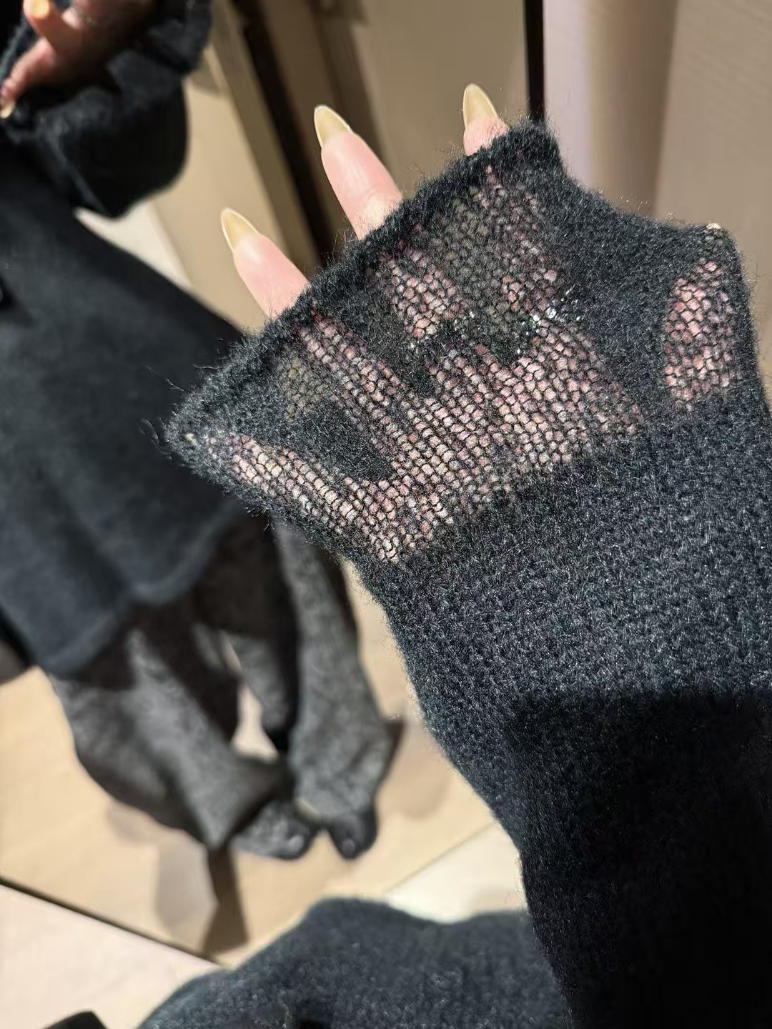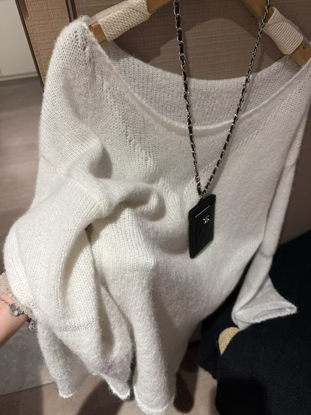 入秋鏤空拼接長袖毛衣