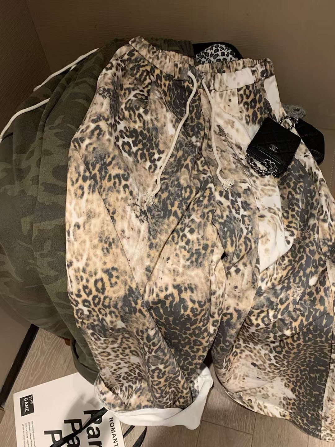 毛圈鬆緊腰休閒迷彩豹紋衛長褲