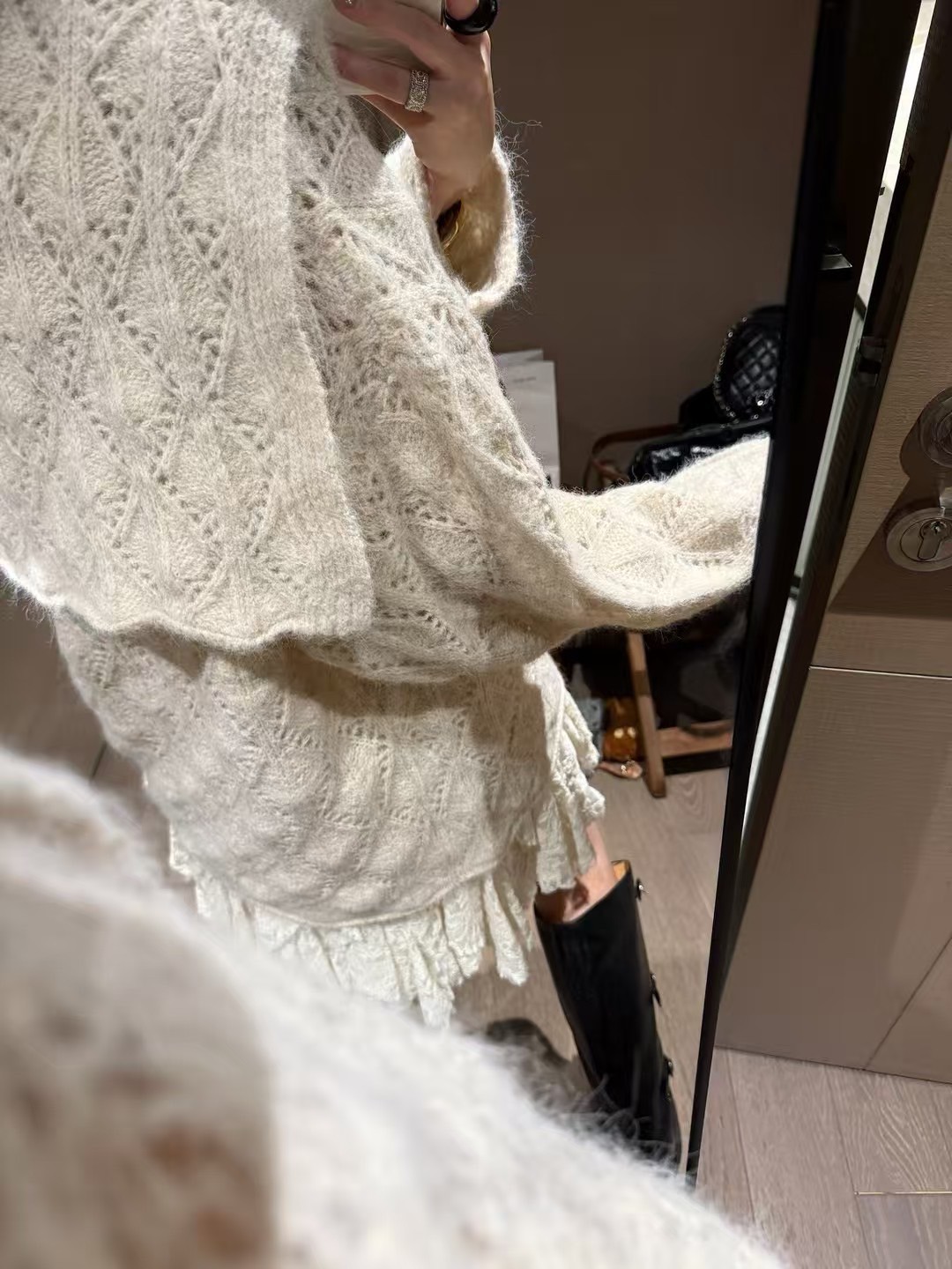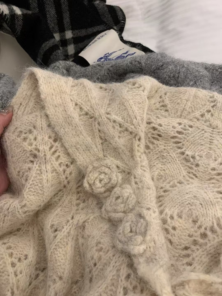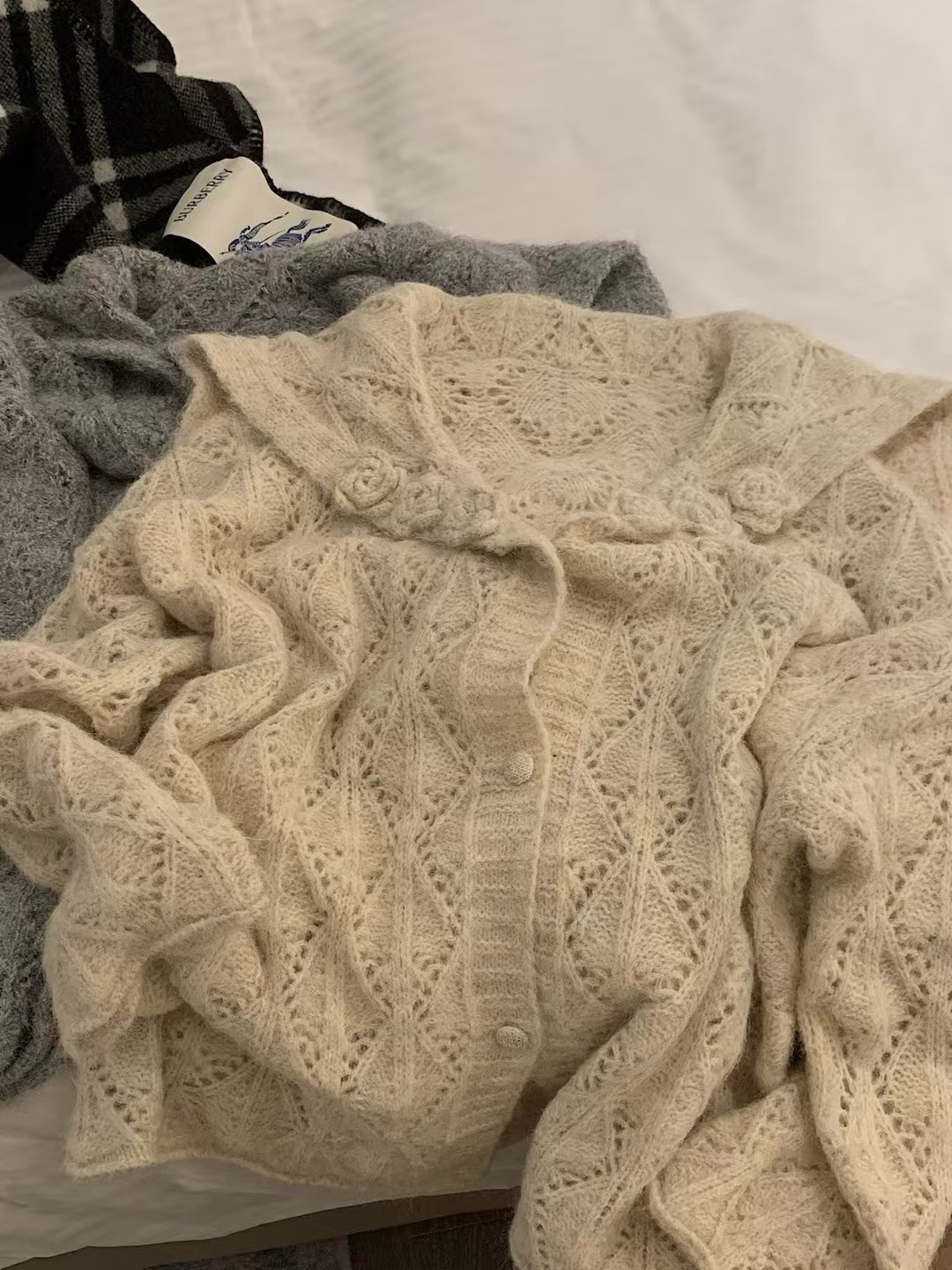 面料 /羊駝長毛 尺寸 /CM F 胸圍120 衣長61 模特 :162/48 適合 非常寬大的版型不挑身材 落肩蝙蝠袖的設計 上身效果慵懶隨性 全身菱形移針織法 海軍大翻領復古的勾花紋理 毛衣的布料厚實軟糯有分量 上身還不紮人 領口6朵玫瑰花也都是手工勾的哦! 釦子全部都是大身面料包扣 兩個基礎低飽和色系 https://web.mansastudio.tw/wp-content/uploads/2025/09/780217401.915629.mp4 顏色 預購 – 灰色, 預購 – 杏色