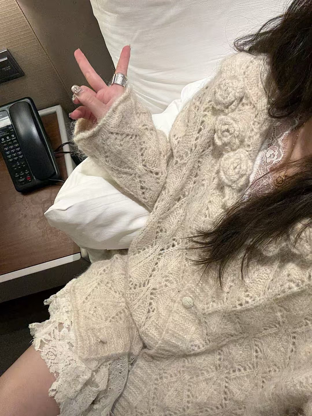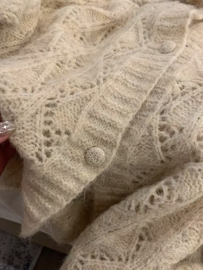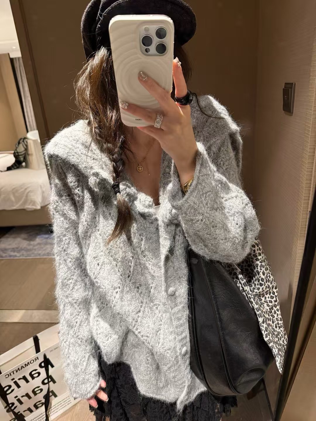 面料 /羊駝長毛 尺寸 /CM F 胸圍120 衣長61 模特 :162/48 適合 非常寬大的版型不挑身材 落肩蝙蝠袖的設計 上身效果慵懶隨性 全身菱形移針織法 海軍大翻領復古的勾花紋理 毛衣的布料厚實軟糯有分量 上身還不紮人 領口6朵玫瑰花也都是手工勾的哦! 釦子全部都是大身面料包扣 兩個基礎低飽和色系 https://web.mansastudio.tw/wp-content/uploads/2025/09/780217401.915629.mp4 顏色 預購 – 灰色, 預購 – 杏色