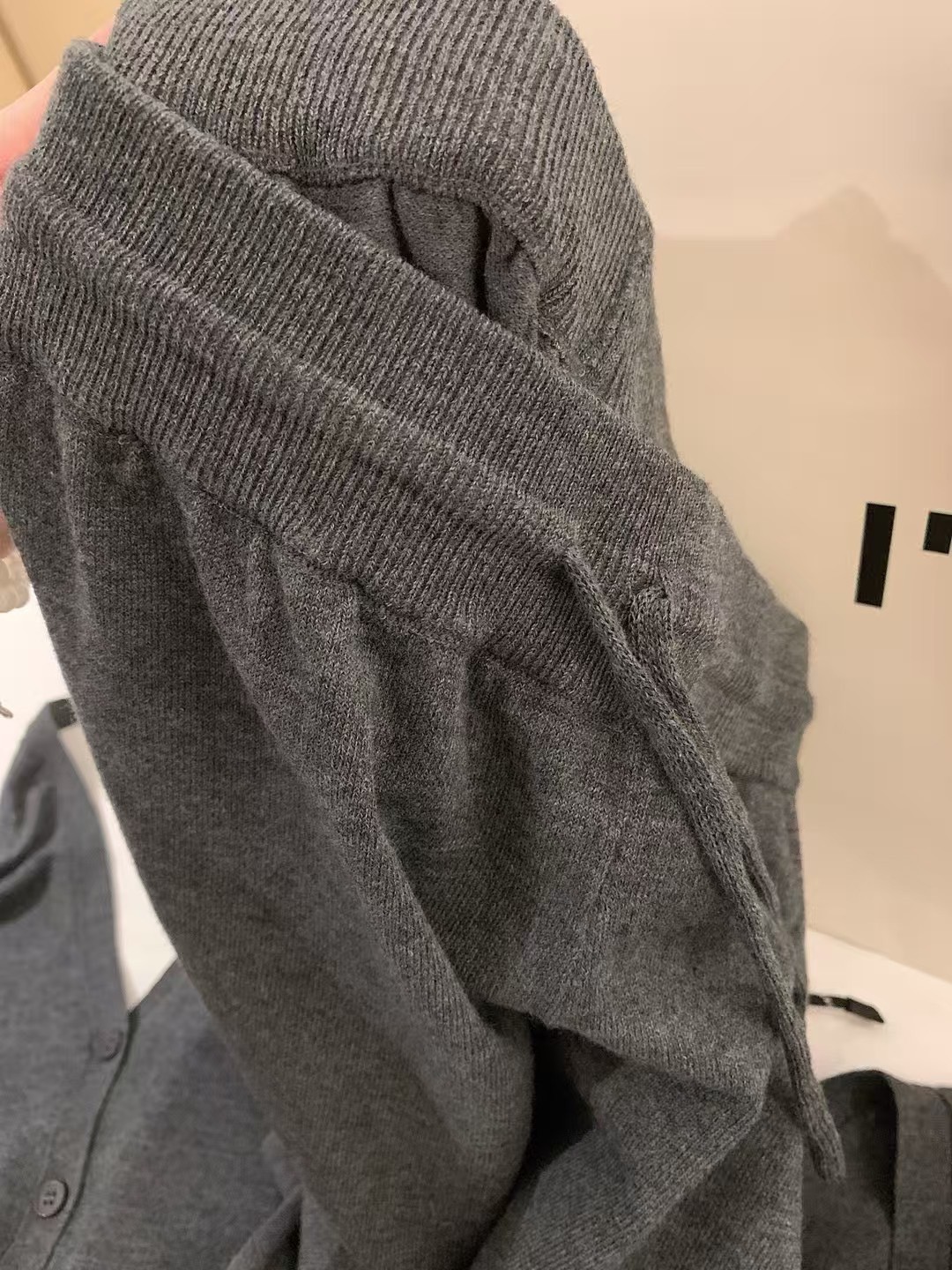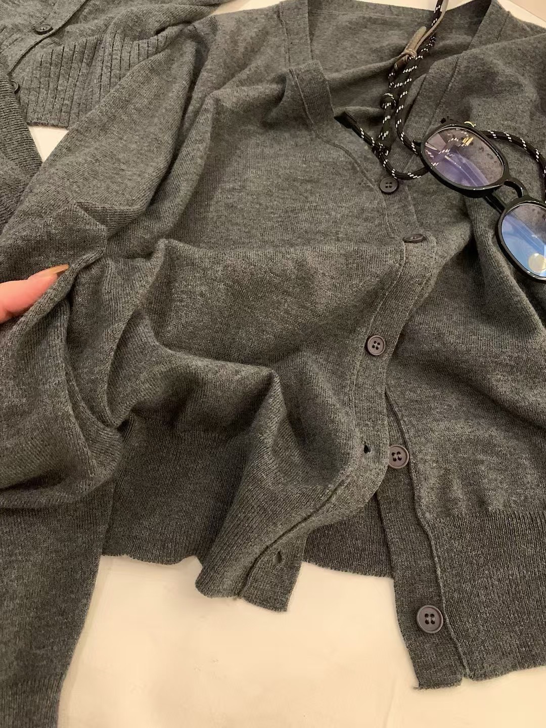 下擺坑條螺紋,搭配無領式開衫