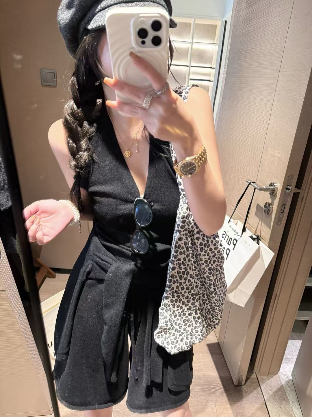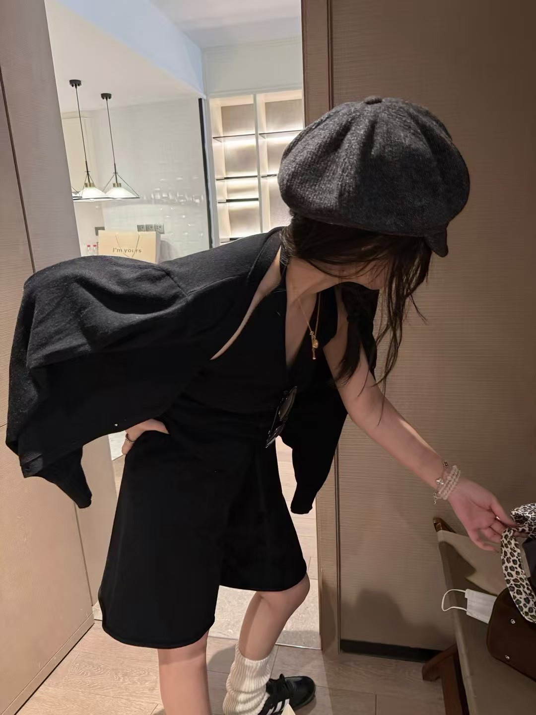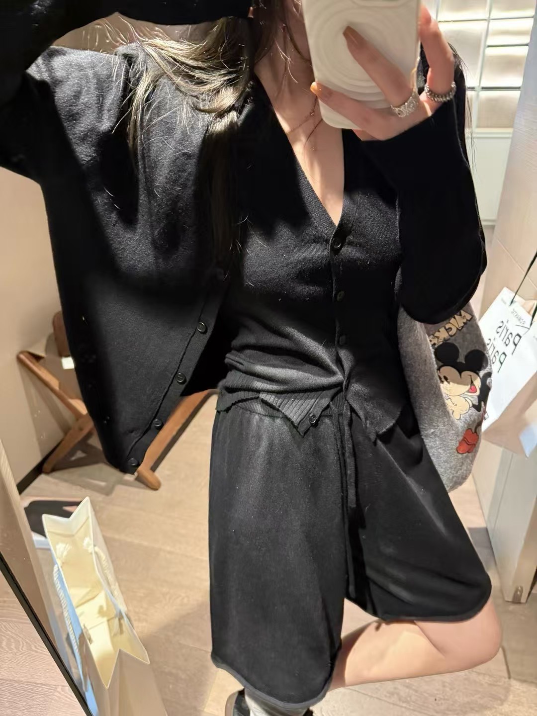羊毛掛脖背心中褲開衫三件套裝