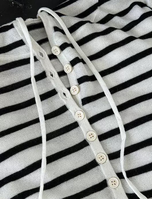 羊毛條紋連帽針織上衣