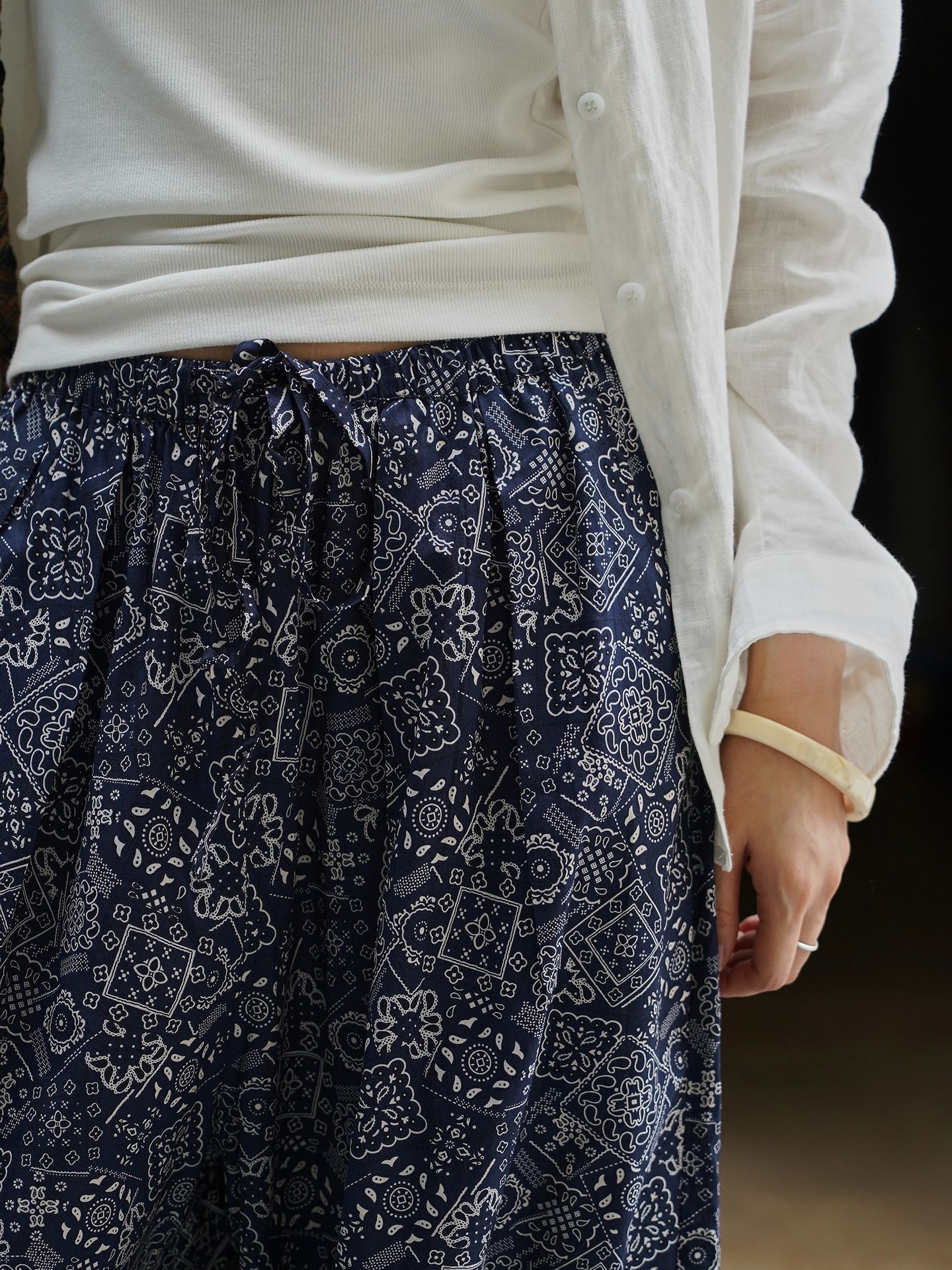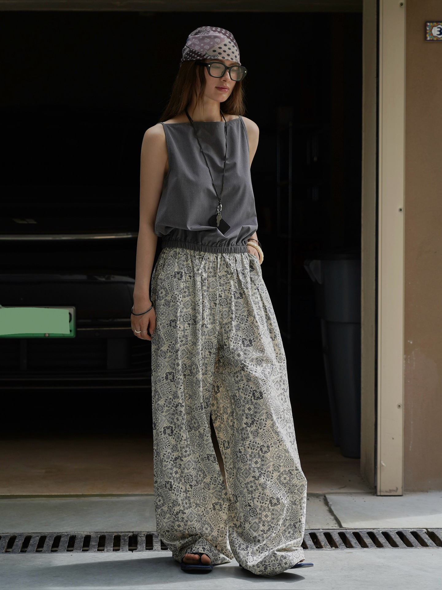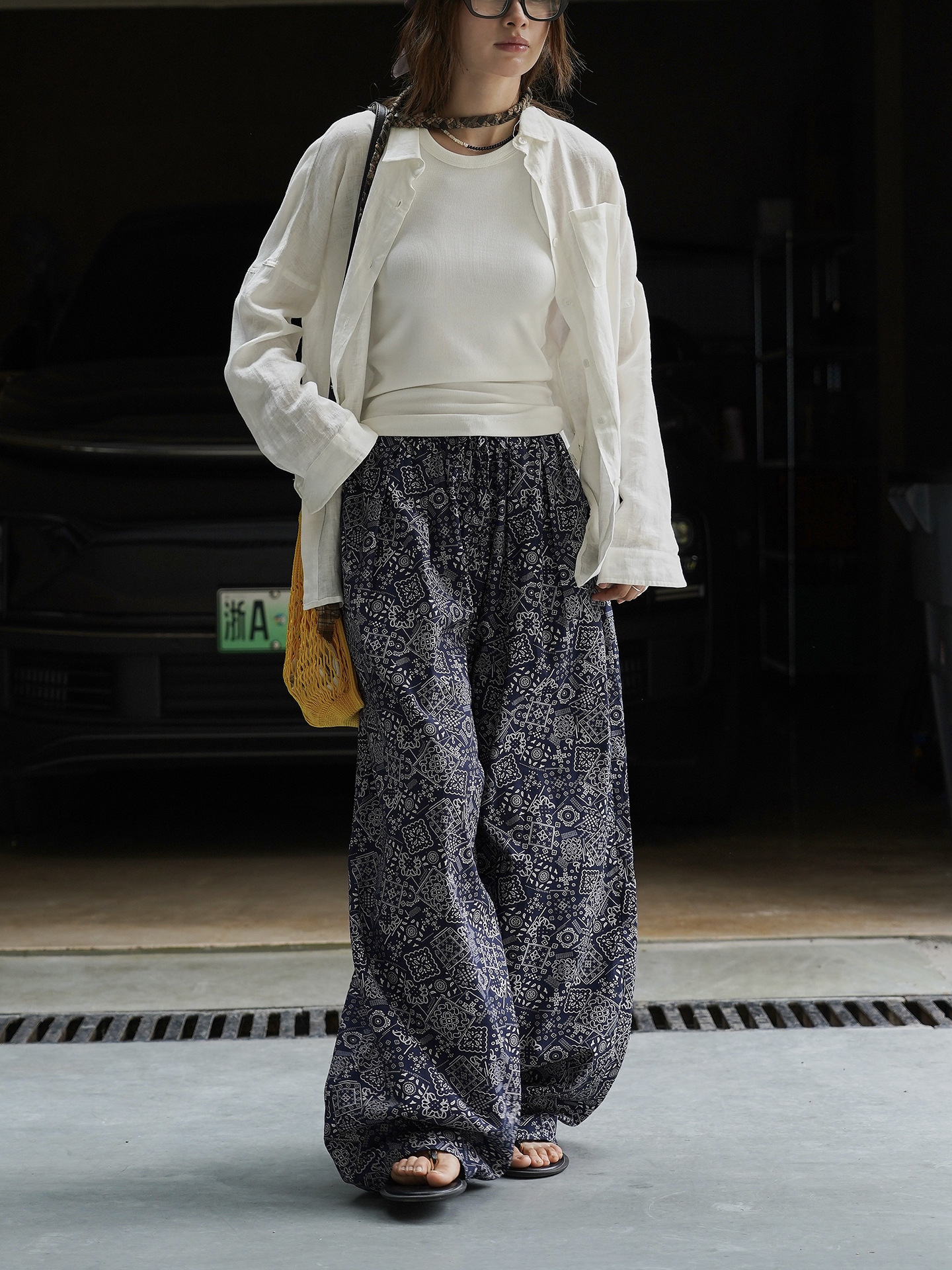 腰果花闊腿休閒褲垂感拖地休閒長褲