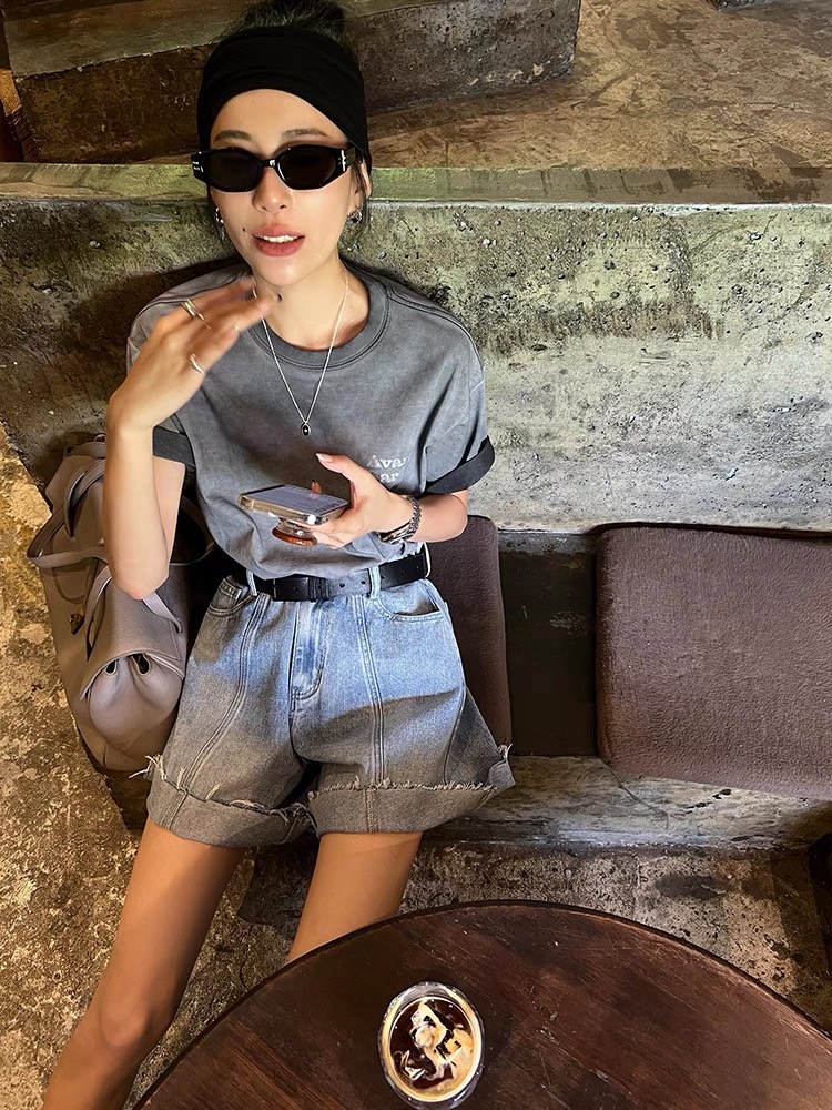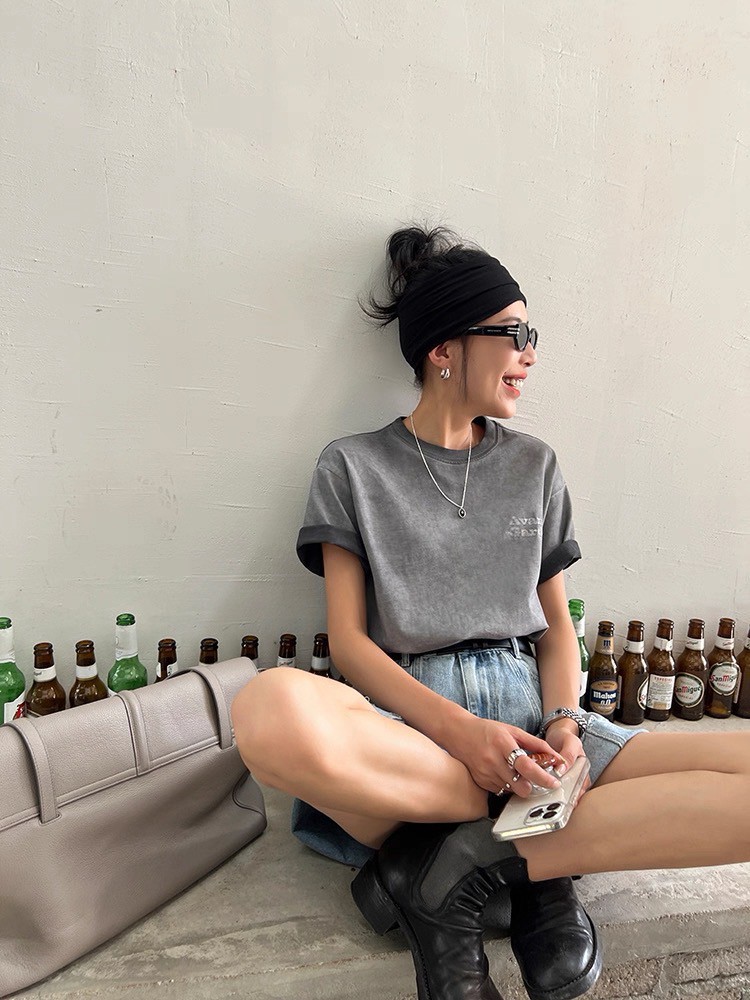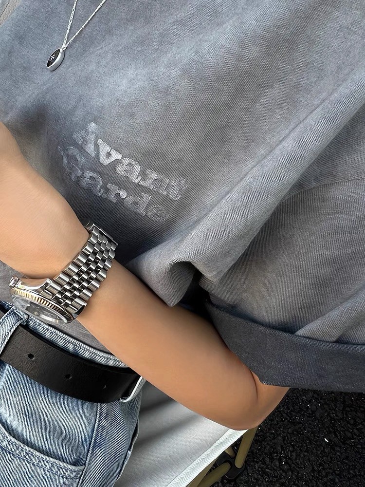 臟洗短袖t恤正肩字母印花圓領