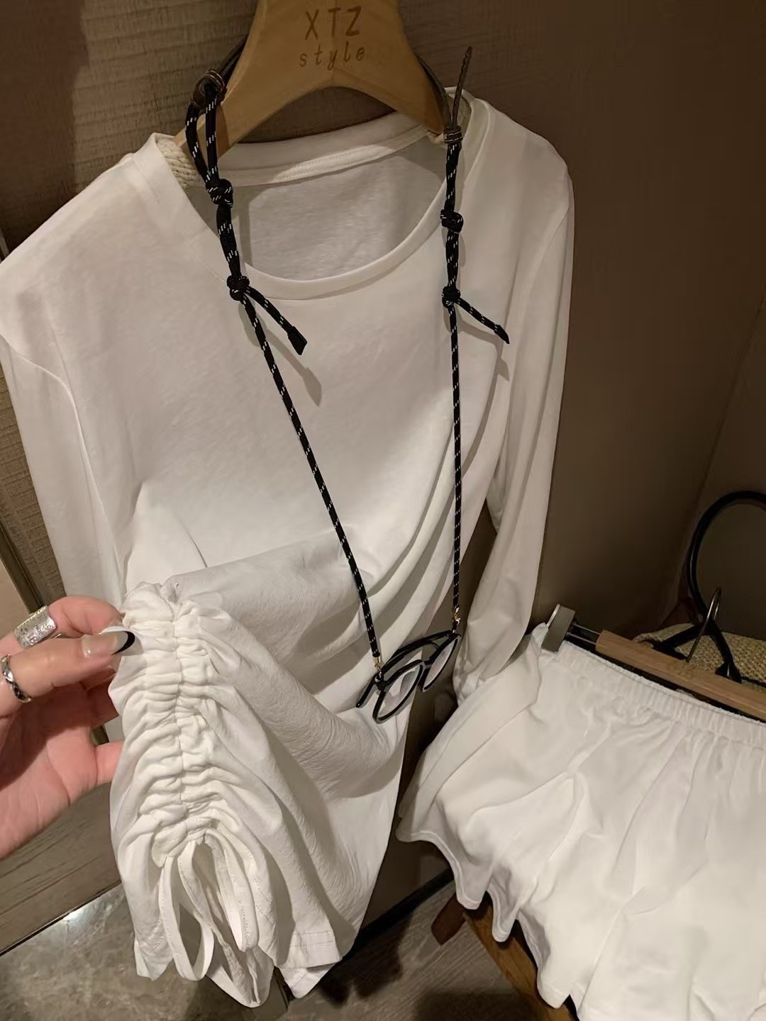 衣服不是短款  但是側身單邊做了抽繩