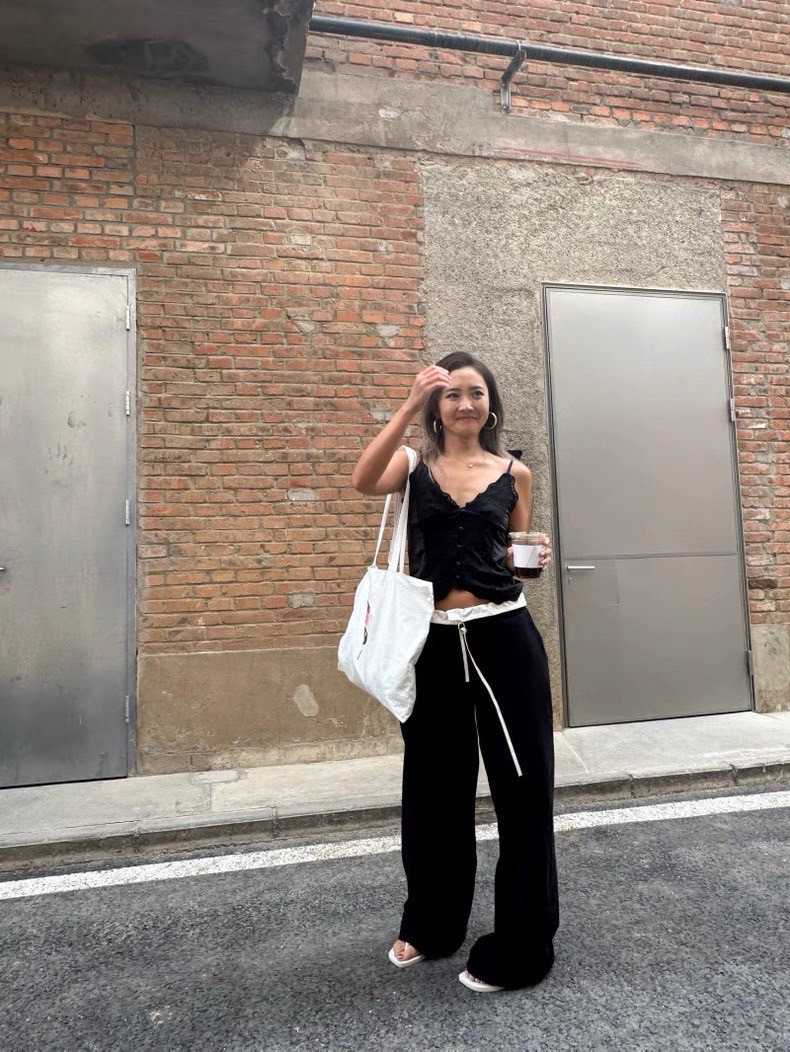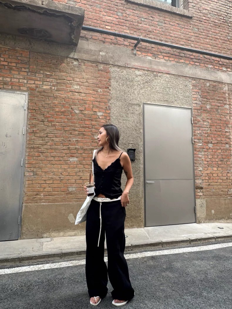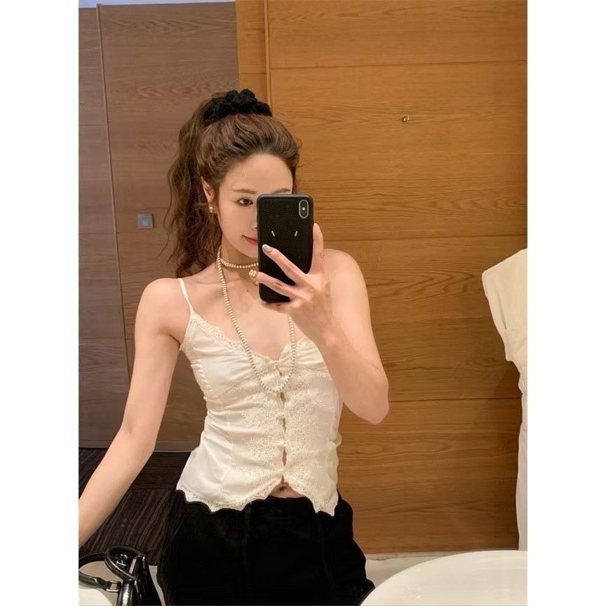 蕾絲性花邊緞面刺繡修身吊帶背心