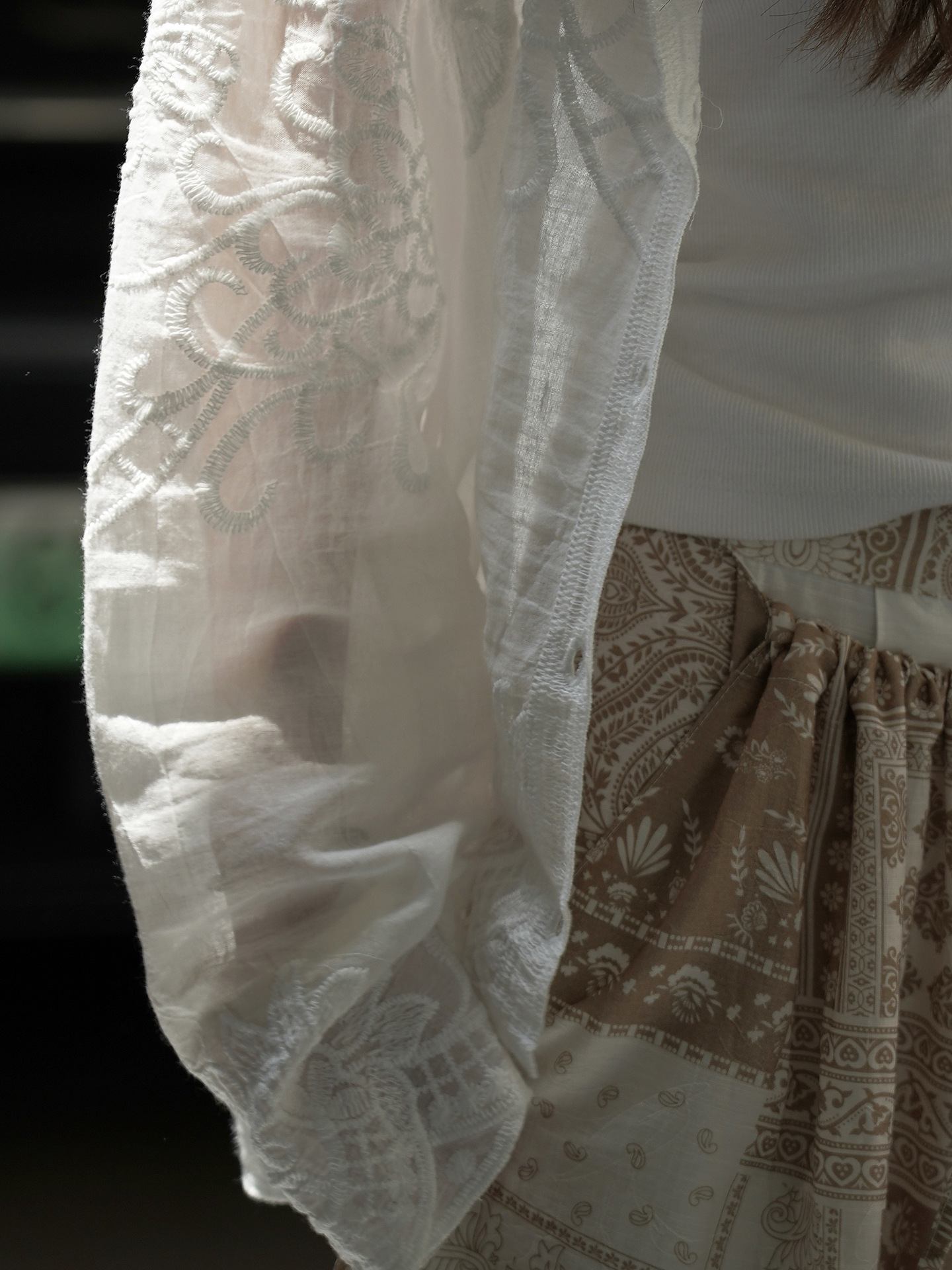 面料 /100%棉 尺寸 /CM F肩寬55胸圍125袖長57.7衣長61 模特 :163/54 F 蕾絲面料 帶著柔軟的筋骨感 不會軟塌塌 輕薄有韌性 層層疊加也能做到輕盈無壓感 結構緊密 日常穿著不易勾絲 耐穿好打理 款式/尺碼 預購-白F