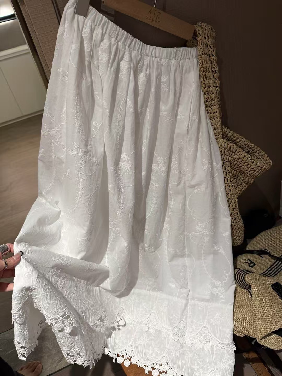 材質:棉布繡花 參考尺寸CM 鬆緊 S 腰圍64 裙長93 M腰圍68 裙長94 L 腰圍72 裙長95 模特 身高 162/48 拍照S <介於尺寸選大> 比較寬鬆的A字版型 腰頭是彈性鬆緊設計 訂製的立體繡花 裙擺用了重工雕花鏤空的花邊 用料還是工藝都很有份量的一款 大擺的長半裙很顯腰細腿長 https://web.mansastudio.tw/wp-content/uploads/2025/07/772994177.975457.mp4 顏色 預購 – 黑色, 預購 – 白色 尺寸 S, M, L
