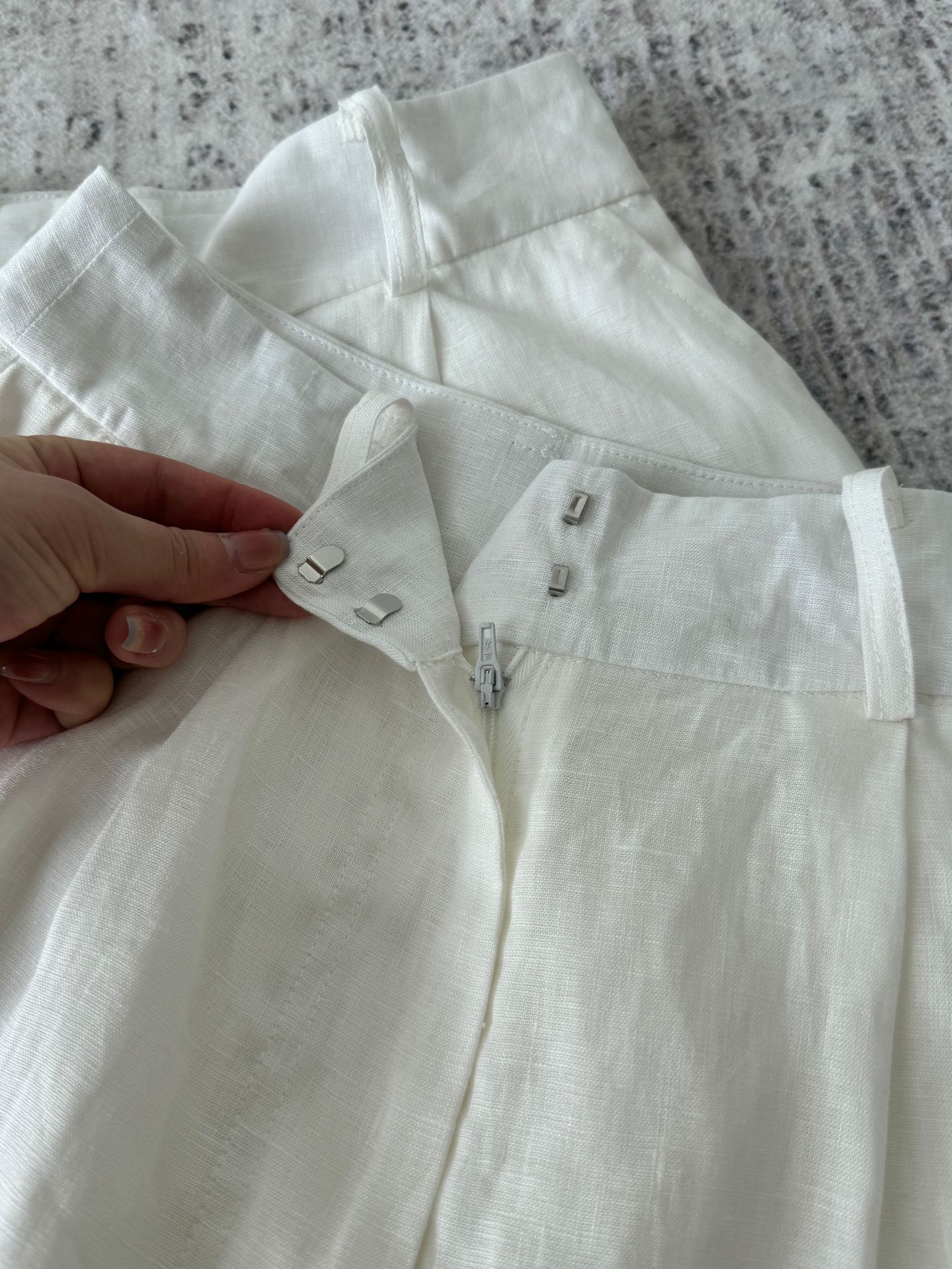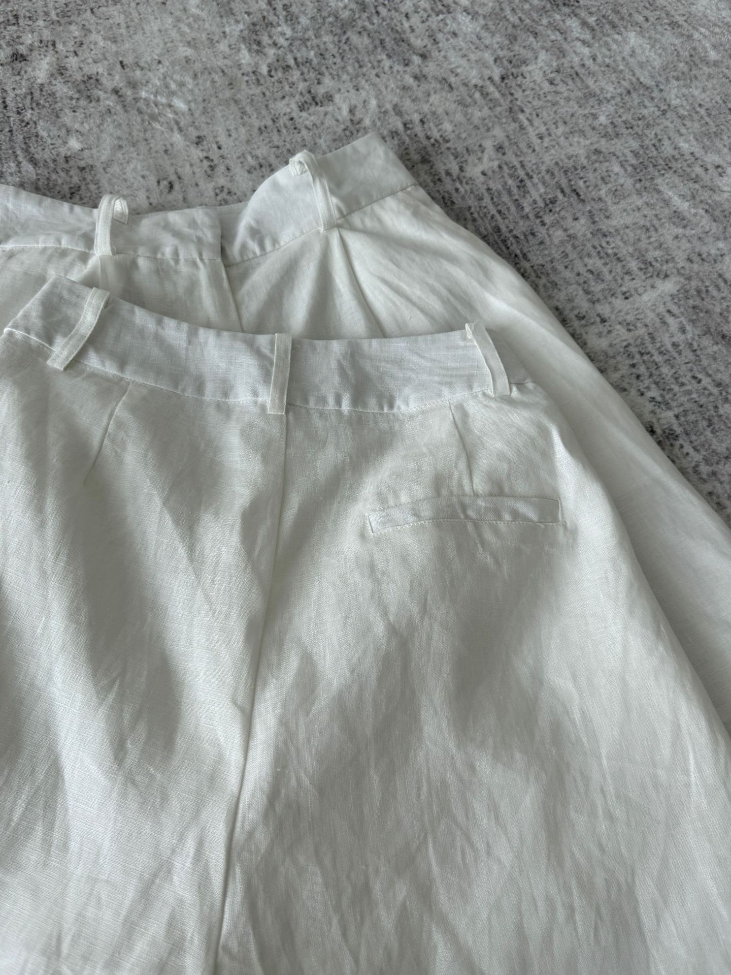面料 / 100%亞麻 尺寸 /CM S 腰圍 64 臀圍 107 褲長 50 M 腰圍 68 臀圍 111 褲長 51 L 腰圍 72 臀圍 115 褲長 52 模特 :168/50 拍照穿M 試穿報告/167/60 穿L, 160/49 穿M,162/47 穿S 亞麻洗滌方式: 避免機洗,輕柔手洗 忌用力搓洗、扭絞除水,避免長時間浸泡 洗滌時請用冷水 攪拌後再放入衣物, 用手輕輕搓洗 於陰涼處掛乾即可 請勿使用洗衣粉或肥皂類鹼性洗滌品 顏色 預購 – 白色, 預購 – 黑色 尺寸 S, M, L